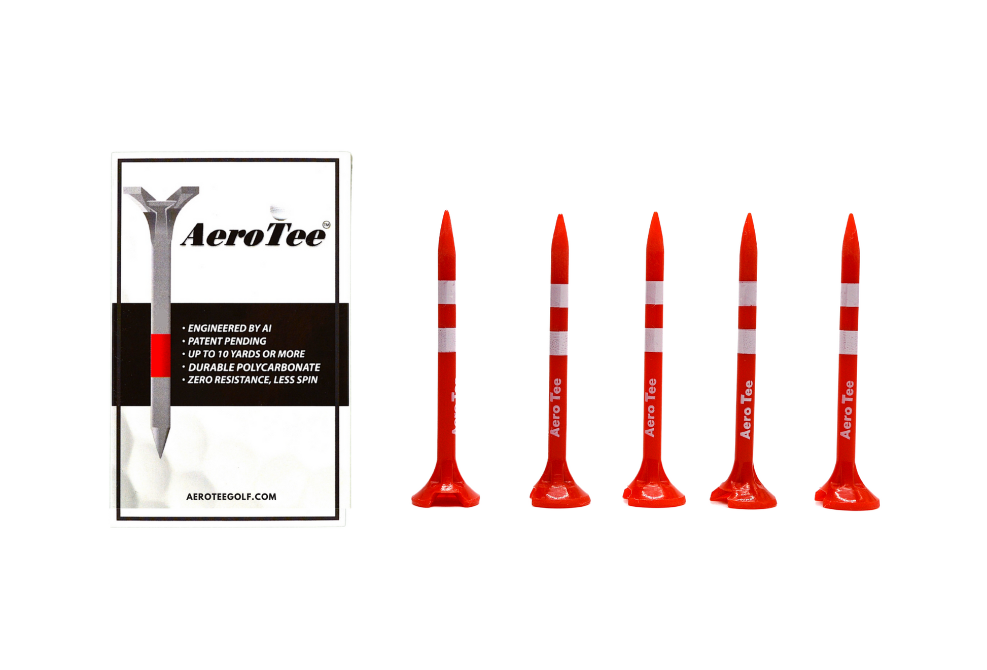 Aero Tee : AI- Engineered and Designed with AI - Patented USGA Approved Equipment Brand - 5 of 3.25" golf tees in a box / RED